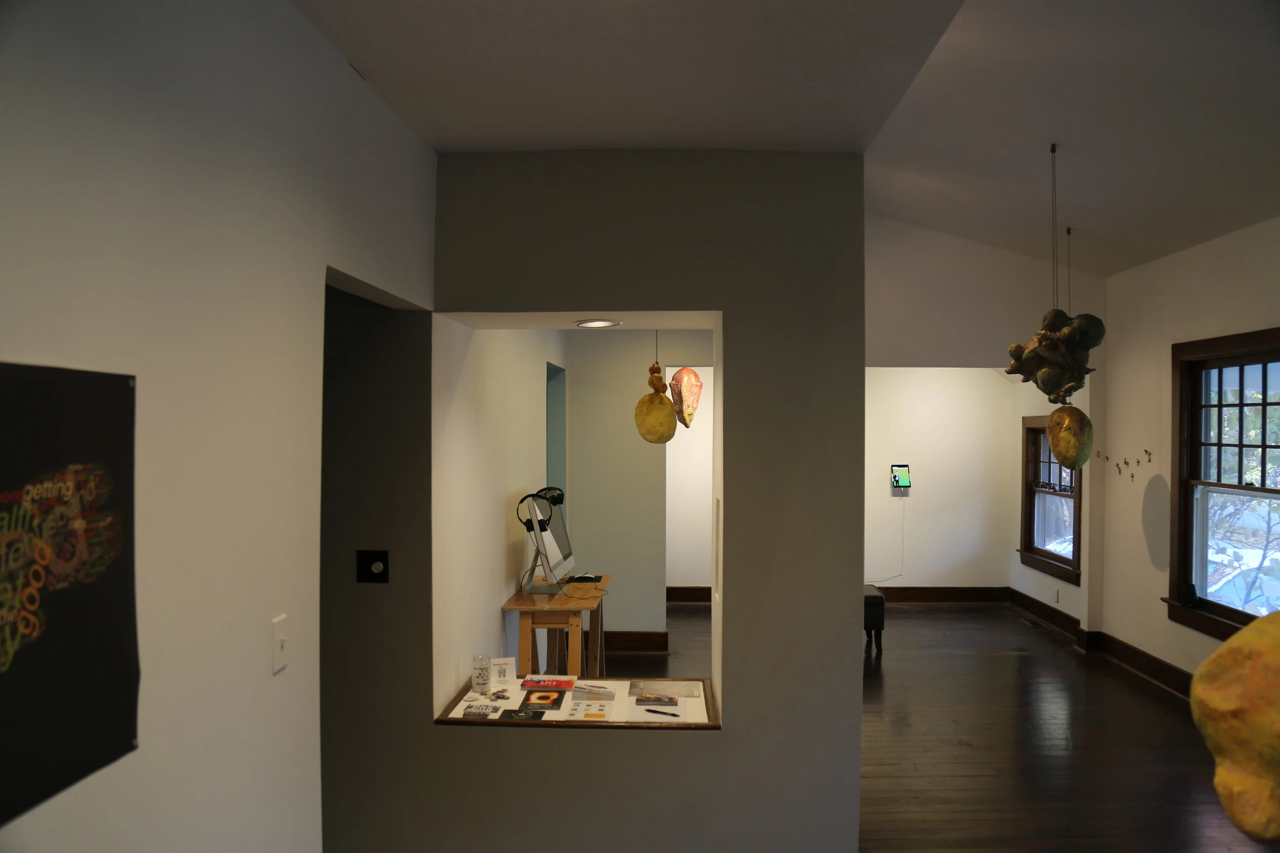 The Blue House Gallery is excited to present Worries Bash Dayton, a collaborative community engaged art installation by Massachusetts based artists Caitlin & Misha. Worries Bash is a participatory installation consisting of recorded worries from hundreds of people recorded presented as part of a continuous audio portrait emanating from fragile papier-mâché sculptures. When attendees tap or hit the sculpture a worry will come into focus so that it can be heard clearly before again submerging into an abstract murmur. Worries Bash culminates with a ceremonial destruction of the sculptures as a means to share and release worries. This pairing of worries with celebration aims to provide some insight into the complexities of the anxieties we live with. Can the destruction of these interactive worry vessels create space for clarity?